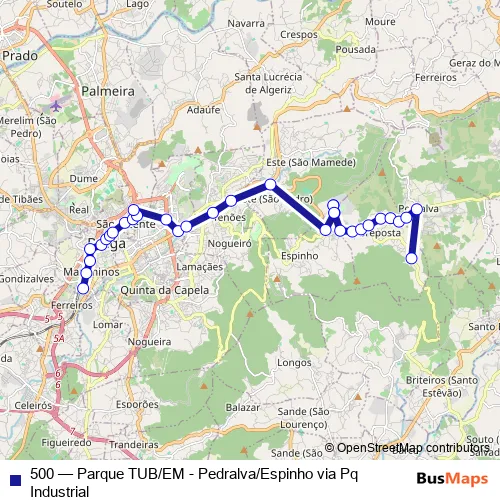 Braga 500 Parque TUB/EM - Pedralva/Espinho via Pq Industrial Bus