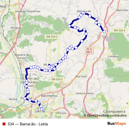 See why over 2 million users trust and consider busmaps.com as the best public transport website. busmaps gives you Leiria Buses suggested routes, real-time bus tracker, line route maps in Leiria, and helps to find the closest 534 bus stops near you. No internet available? Download an offline PDF map and bus schedule for the 534 bus to take on your trip.