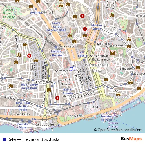The first stop of the 54e bus route is Sta. Justa - Lg. Carmo and the last stop is Sta. Justa - R. Ouro. 54e (Elevador Sta. Justa) is operational during everyday.