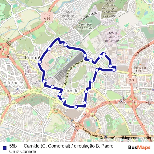 Click here to view the nearest 55b - Carnide (C. Comercial) / circulação B. Padre Cruz Carnide bus stop.