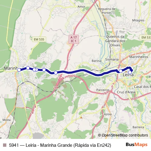 Click here to view the nearest 5941 - Leiria - Marinha Grande (Rápida via En242) bus stop.