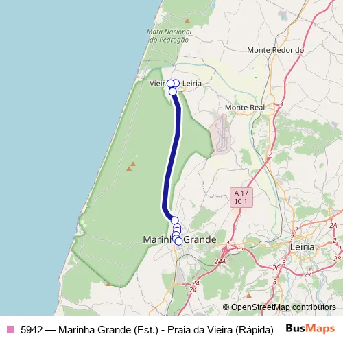 Click here to view the nearest 5942 - Marinha Grande (Est.) - Praia da Vieira (Rápida) bus stop.