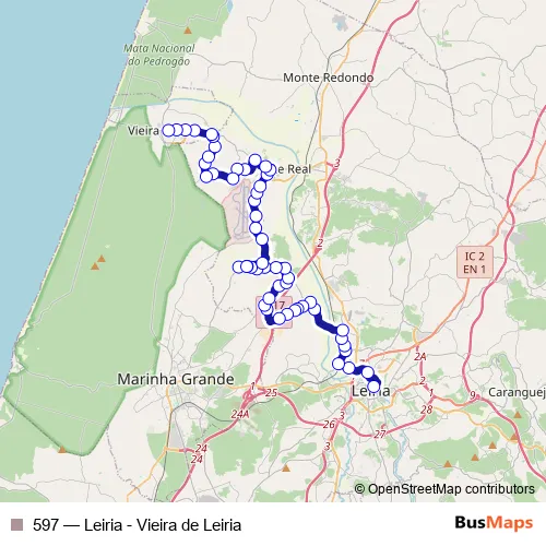 Click here to view the nearest 597 - Leiria - Vieira de Leiria bus stop.