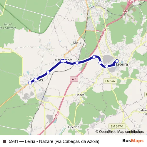 Click here to view the nearest 5981 - Leiria - Nazaré (via Cabeças da Azóia) bus stop.