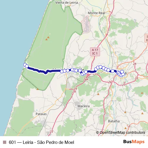 Click here to view the nearest 601 - Leiria - São Pedro de Moel bus stop.