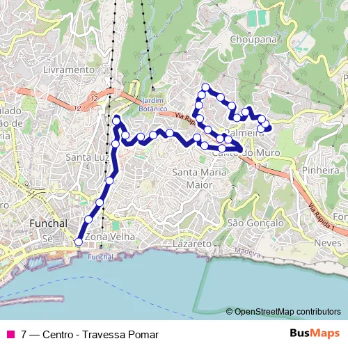Bus 7 - Centro - Travessa Pomar in Funchal: Stops & Timetable