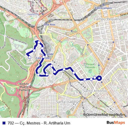 Bus 702 - Cç. Mestres - R. Artilharia Um: Full Schedule in Lisbon