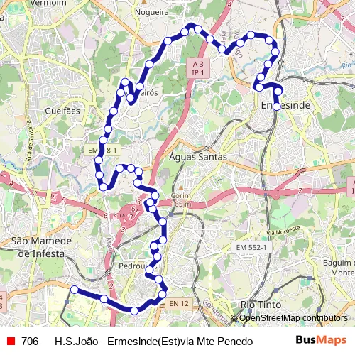 Click here to view the nearest 706 - H.S.João - Ermesinde(Est)via Mte Penedo bus stop.