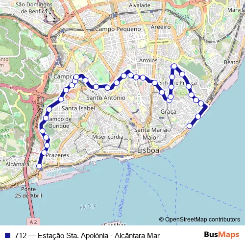 Bus 712 - Estação Sta. Apolónia - Alcântara Mar in Lisbon: Stops & Timetable