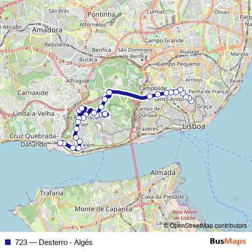 Bus 723 - Desterro - Algés: Full Schedule in Lisbon