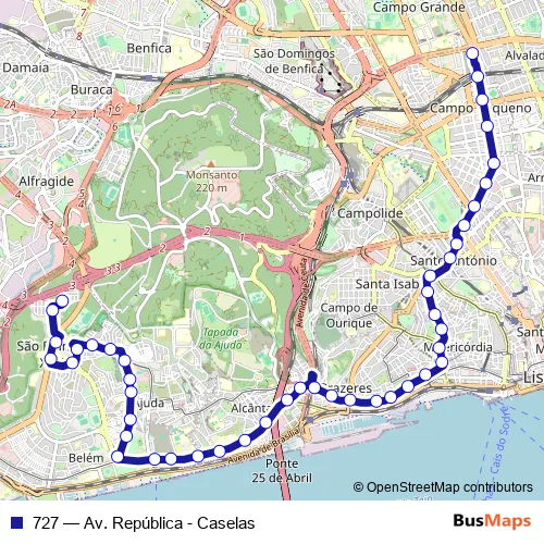 Bus 727 - Av. República - Caselas in Lisbon: Stops & Timetable