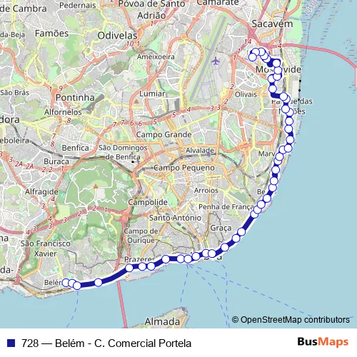 Bus 728 - Belém - C. Comercial Portela Schedule in Lisbon