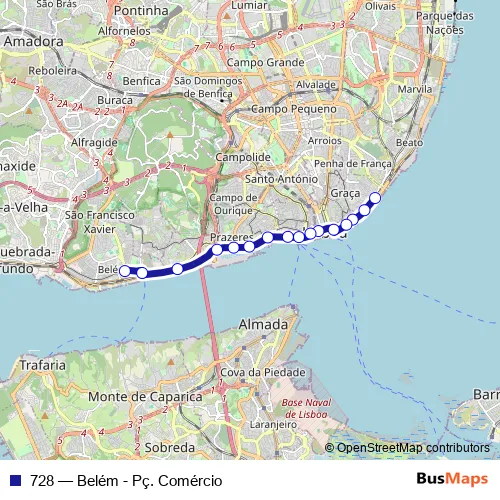 Click here to view the nearest 728 - Belém - Pç. Comércio bus stop.