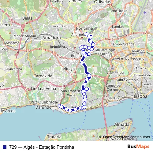 Bus 729 - Algés - Estação Pontinha Schedule in Lisbon