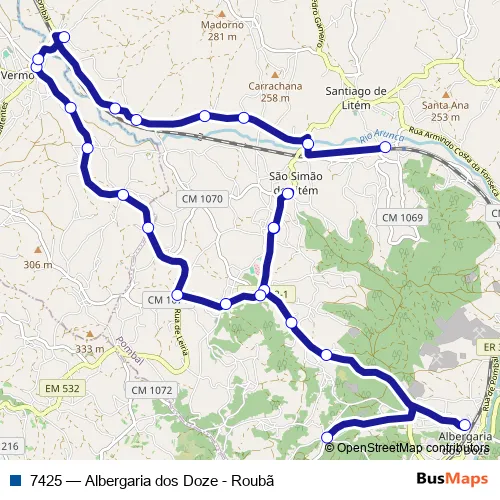 Click here to view the nearest 7425 - Albergaria dos Doze - Roubã bus stop.