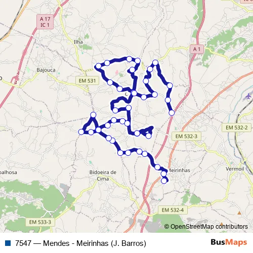 Click here to view the nearest 7547 - Mendes - Meirinhas (J. Barros) bus stop.