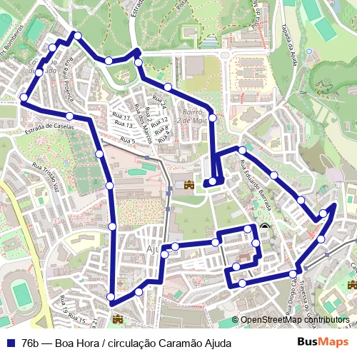 See why over 2 million users trust and consider busmaps.com as the best public transport website. busmaps gives you Lisbon Buses suggested routes, real-time bus tracker, line route maps in Lisbon, and helps to find the closest 76b bus stops near you. No internet available? Download an offline PDF map and bus schedule for the 76b bus to take on your trip.