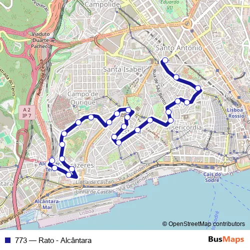 Bus 773 - Rato - Alcântara: Full Schedule in Lisbon