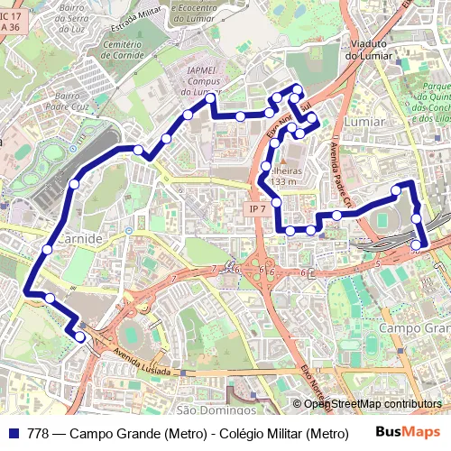 Click here to view the nearest 778 - Campo Grande (Metro) - Colégio Militar (Metro) bus stop.