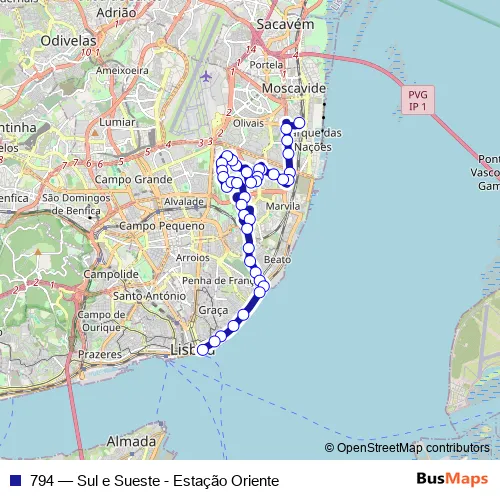 See why over 2 million users trust and consider busmaps.com as the best public transport website. busmaps gives you Lisbon Buses suggested routes, real-time bus tracker, line route maps in Lisbon, and helps to find the closest 794 bus stops near you. No internet available? Download an offline PDF map and bus schedule for the 794 bus to take on your trip.
