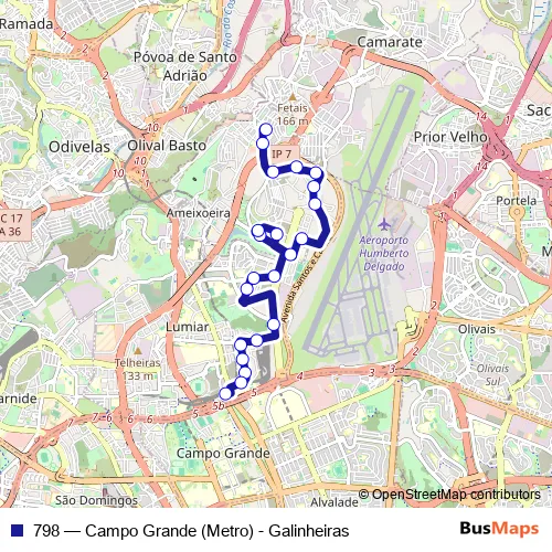 Click here to view the nearest 798 - Campo Grande (Metro) - Galinheiras bus stop.