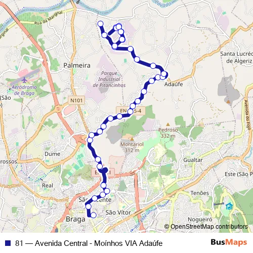 81 (Avenida Central - Moínhos VIA Adaúfe) Bus in Braga
