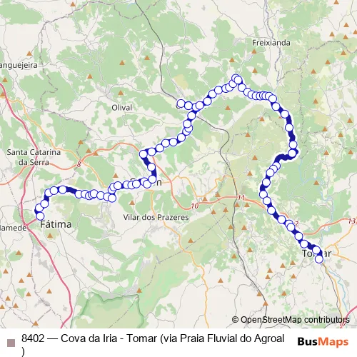 Click here to view the nearest 8402 - Cova da Iria - Tomar (via Praia Fluvial do Agroal) bus stop.