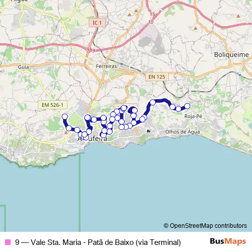 Bus 9 - Vale Sta. Maria - Patã de Baixo (via Terminal) in Albufeira: Stops & Timetable