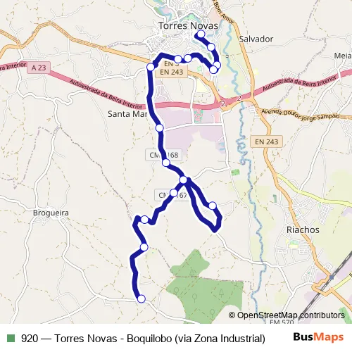 Click here to view the nearest 920 - Torres Novas - Boquilobo (via Zona Industrial) bus stop.