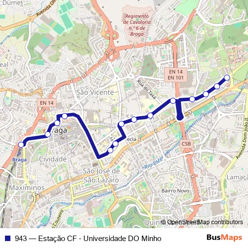 Bus 943 - Estação CF - Universidade DO Minho Schedule in Braga
