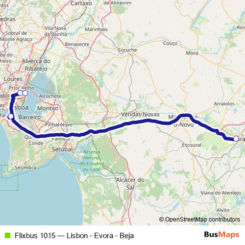 Click here to view the nearest Flixbus 1015 - Lisbon - Evora - Beja bus stop.