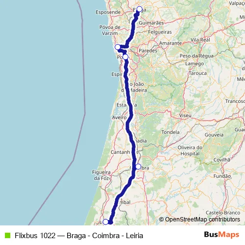 Click here to view the nearest Flixbus 1022 - Braga - Coimbra - Leiria bus stop.