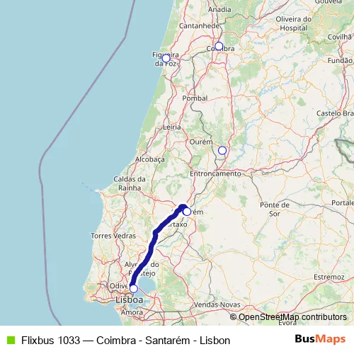 Click here to view the nearest Flixbus 1033 - Coimbra - Santarém - Lisbon bus stop.