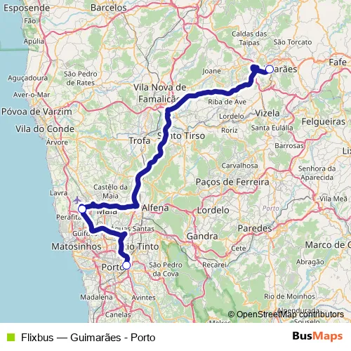 Click here to view the nearest Flixbus - Guimarães - Porto bus stop.