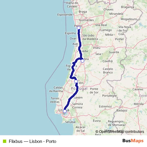 Click here to view the nearest Flixbus - Lisbon - Porto bus stop.