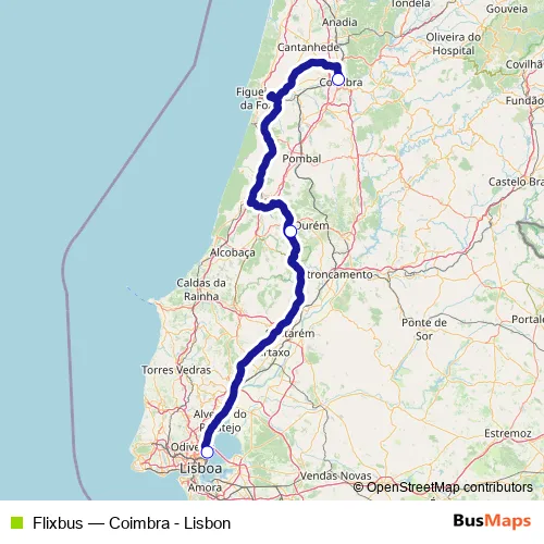 The first stop of the Flixbus bus route is Lisbon (Oriente) and the last stop is Coimbra R. Padrão. Flixbus (Coimbra - Lisbon) is operational during everyday.
