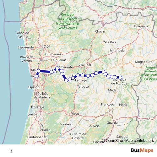 The first stop of the Ir rail route is Pocinho and the last stop is Porto Campanha. Ir is operational during everyday.