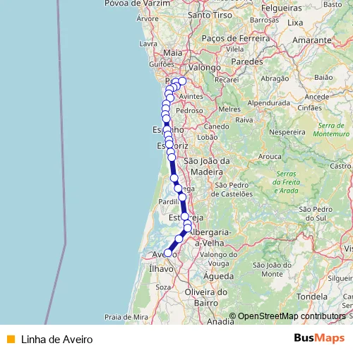The first stop of the Linha de Aveiro rail route is Porto Sao Bento and the last stop is Aveiro. Linha de Aveiro (Linha de Aveiro) is operational during everyday.