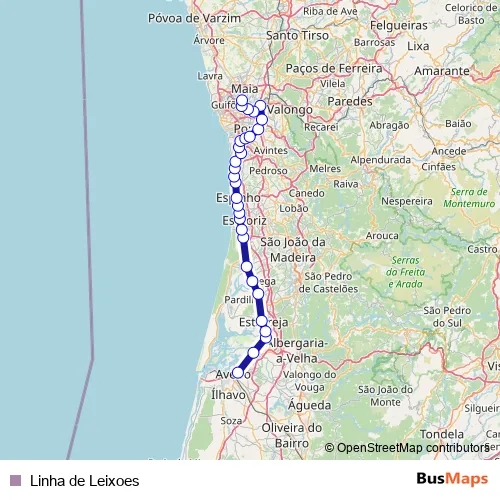 The first stop of the Linha de Leixoes rail route is Aveiro and the last stop is Leca do Balio. Linha de Leixoes (Linha de Leixoes) is operational during on weekdays.