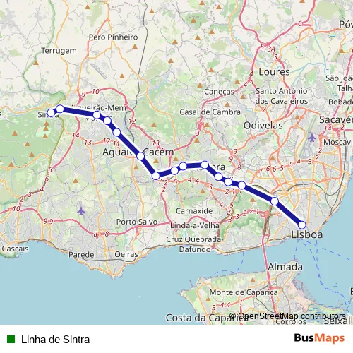 See why over 2 million users trust and consider busmaps.com as the best public transport website. busmaps gives you Lisbon Rail Services suggested routes, real-time bus tracker, line route maps in Lisbon, and helps to find the closest Linha de Sintra rail stops near you. No internet available? Download an offline PDF map and bus schedule for the Linha de Sintra rail to take on your trip.