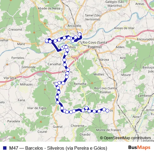 Bus M47 - Barcelos - Silveiros (via Pereira e Góios) Schedule in Barcelos