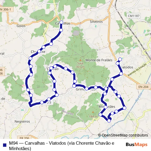 Click here to view the nearest M94 - Carvalhas - Viatodos (via Chorente Chavão e Minhotães) bus stop.