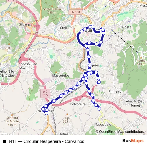 Click here to view the nearest N11 - Circular Nespereira - Carvalhos bus stop.