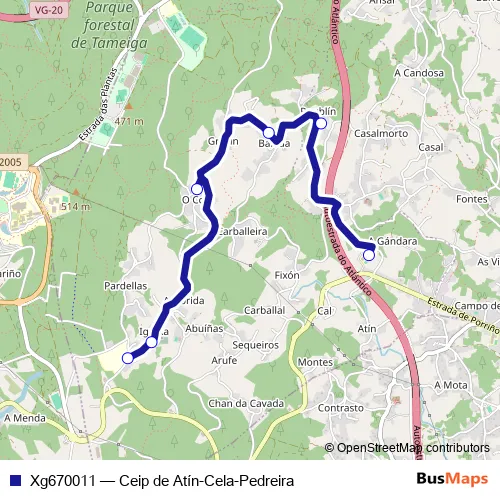 Bus Xg670011 - Ceip de Atín-Cela-Pedreira in Valenca: Stops & Timetable