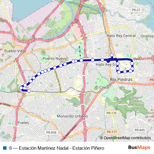 Bus 8 - Estación Martínez Nadal - Estación Piñero: Full Schedule in San Juan