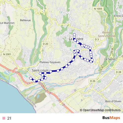 See why over 2 million users trust and consider busmaps.com as the best public transport website. busmaps gives you Saint-Louis Buses suggested routes, real-time bus tracker, line route maps in Saint-Louis, and helps to find the closest 21 bus stops near you. No internet available? Download an offline PDF map and bus schedule for the 21 bus to take on your trip.