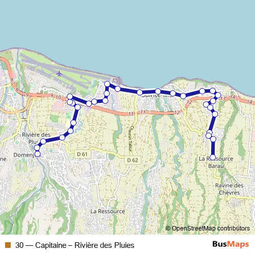 Bus 30 - Capitaine – Rivière des Pluies in Saint-Denis: Stops & Timetable