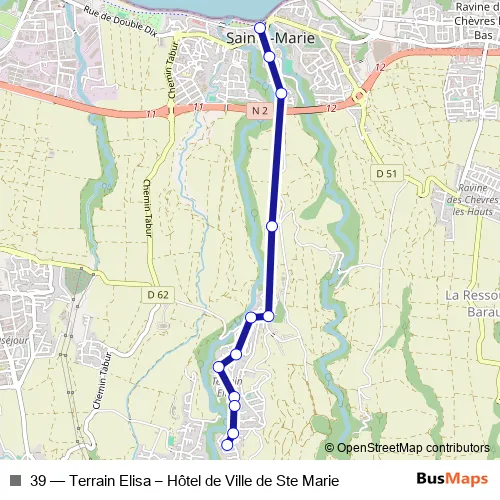 Bus 39 - Terrain Elisa – Hôtel de Ville de Ste Marie in Saint-Denis: Stops & Timetable