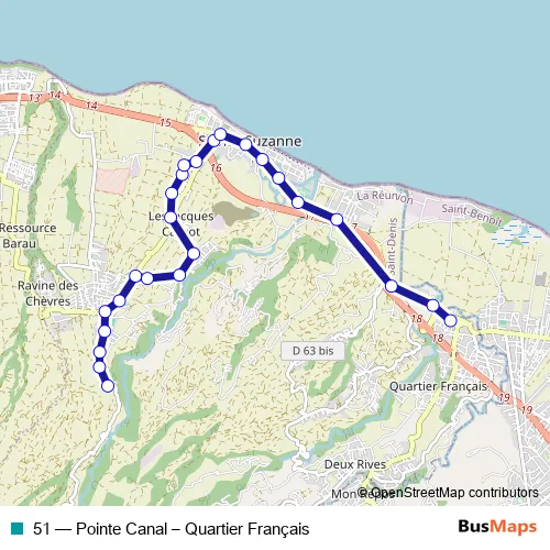 Bus 51 - Pointe Canal – Quartier Français Schedule in Saint-Denis