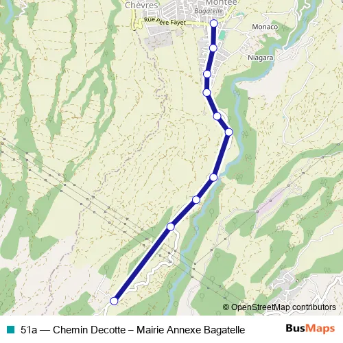 The first stop of the 51a bus route is Chemin Decotte and the last stop is Mairie Annexe Bagatelle. 51a (Chemin Decotte – Mairie Annexe Bagatelle) is operational during everyday.